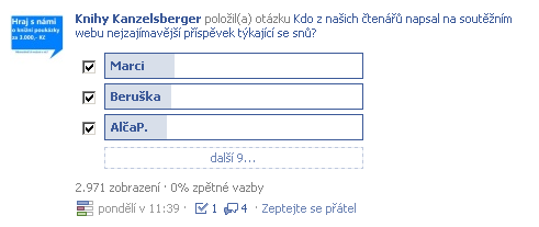V pondělí jsme vám dali šanci rozhodnout o třech výhercích stokorunové poukázky. Výsledky ankety jsou jasné: na odměnu se mohou těšit Marci, Beruška a AlčaP.